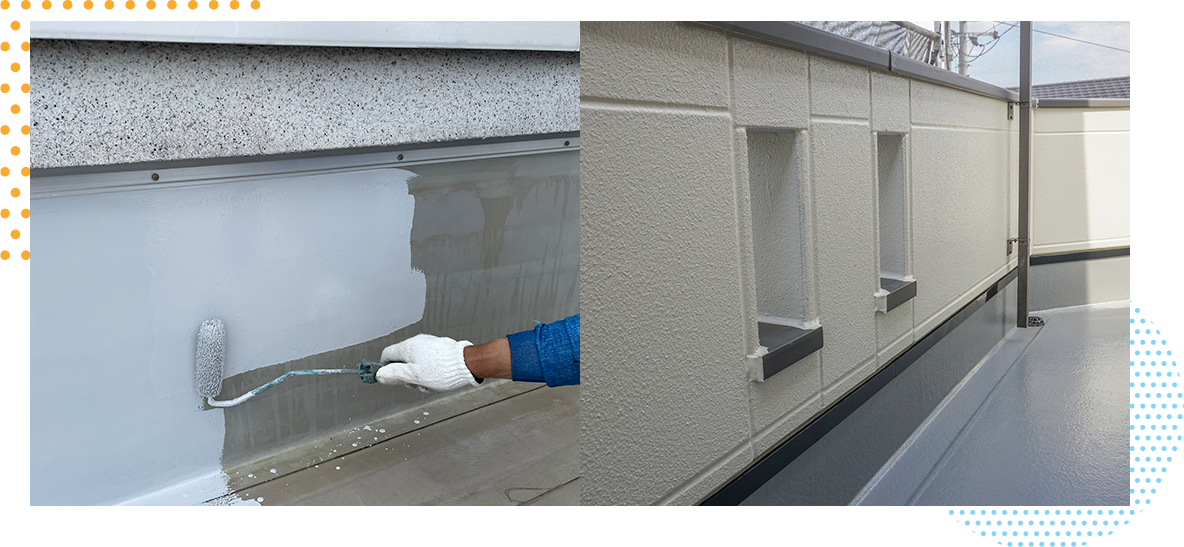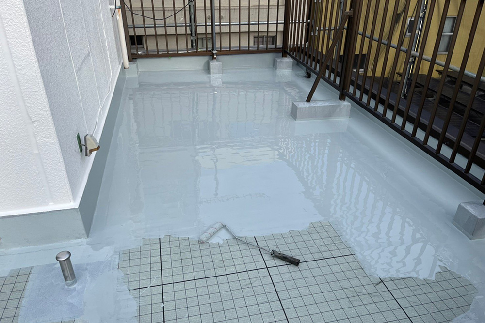 ウレタン防水は、コンクリートとの密着性に優れています。防水面に継ぎ目がなく、シームレスな仕上がりに。
